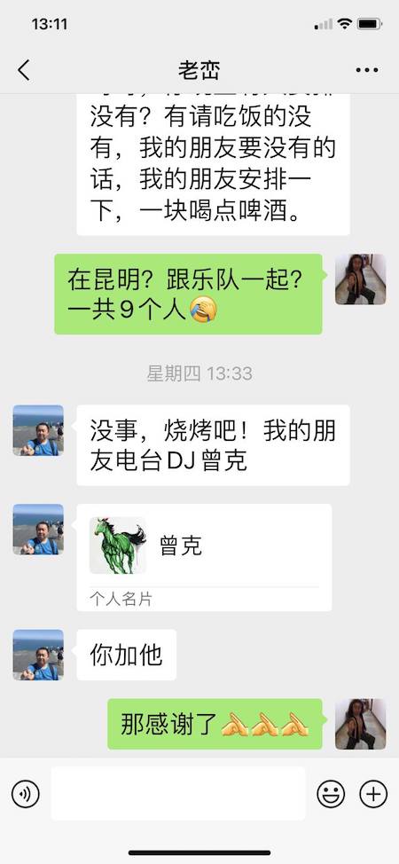 実はツアーと並行して映画(っつうかネットの連続ドラマらしいか)の音楽をやっているのだが、ネットで連絡取りながらホテルにこもってやってたら、相手方のLaoLuanから「今昆明にいるのか?」と・・・