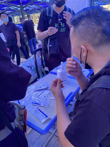 搭乗〜!!銀川に着いたらPCR検査〜・・・って喉の奥をぐりぐりするだけじゃなく、鼻の奥をぐりぐりする抗体検査!(◎_◎;)